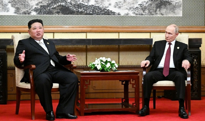 두 정상은 이날 베이징 톈안먼(天安門) 광장에서 열린 전승절 80주년 열병식에 나란히 참석했다. 특히 시진핑(習近平) 총서기 겸 국가주석을 중심으로 왼쪽에 김 위원장, 오른쪽에 푸틴 대통령이 자리해 북중러 결속을 과시했다.