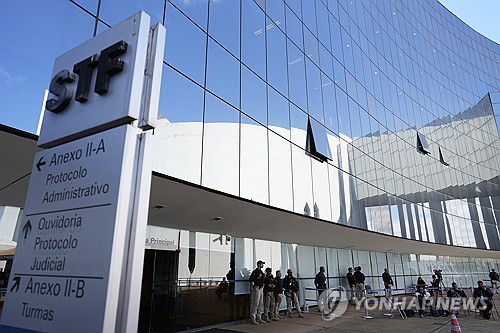 3일(현지시간) 브라질 연방대법원 주변에 배치된 경찰 |