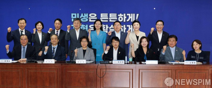 [서울=뉴스핌] 윤창빈 기자 = 문진영 사회수석, 정은경 보건복지부 장관, 박주민 국회 보건복지위원장 등 참석자들이 4일 오전 서울 여의도 국회 의원회관에서 열린 당·정·대 협의에서 기념촬영을 하고 있다. 2025.09.04 pangbin@newspim.com |