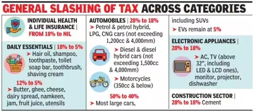 도입 당시 상품 및 서비스 품목을 4개 범주로 나눠 5%, 12%, 18%, 28%의 세금을 부과해오던 것을 2개 범주(5%, 18%)로 축소한 것이다.