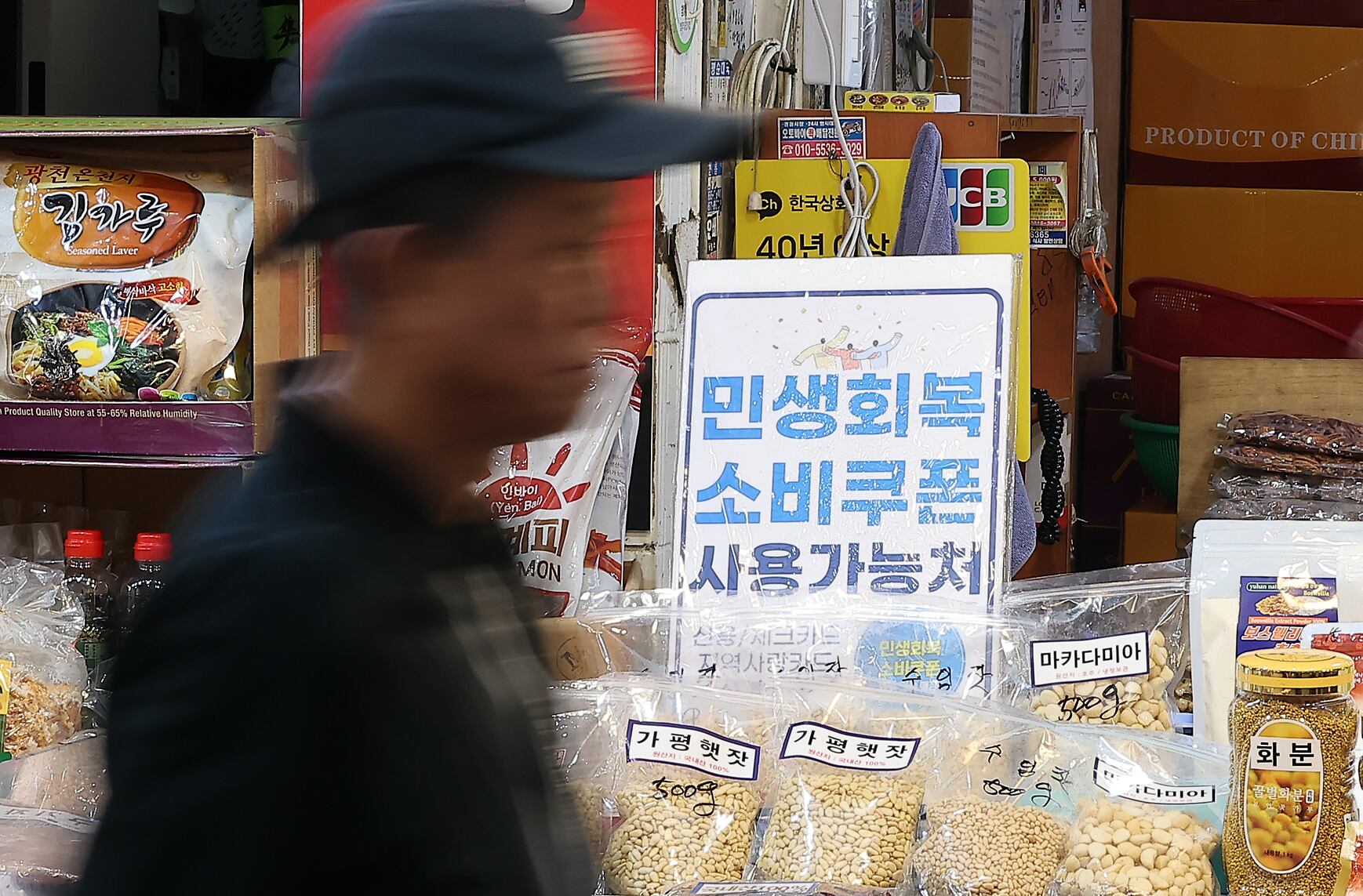 서울 시내 한 전통시장에 부착된 민생회복 소비쿠폰 사용가능 점포 안내문. /뉴스1 |