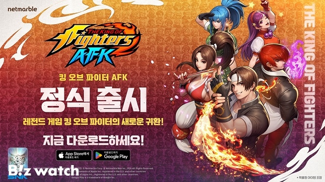 넷마블은 캐릭터 수집·방치형 모바일 역할수행게임(RPG)인 '킹 오브 파이터 AFK'를 4일 글로벌 시장에 정식 출시했다고 밝혔다.