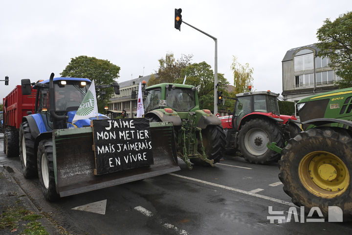[보베=AP/뉴시스] 지난해 11월18일(현지시각) 프랑스 북부 보베에서 농민들이 유럽연합(EU)과 메르코수르(남미공동시장) 간 자유무역협정(FTA)에 반대하며 트랙터 시위를 벌이는 모습. 2025.09.04. |