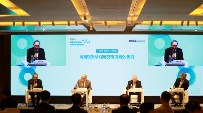 이날 INSS는 '이재명 정부 출범 100일 대북정책 과제와 전망'이란 주제로 포럼을 진행했다. 정 전 장관과 문 교수, 김 전 원장은 1세션에서 앞선 내용의 대담을 나눴다. 2세션에서는 김용현 동국대 교무부총장이 좌장을 맡아 홍현익 전 국립외교원장, 임을출 경남대 극동문제연구소 교수, 박원곤 이화여대 통일학연구원장 등이 '변화하는 국제정세와 한반도'라는 주제로 토론했다.