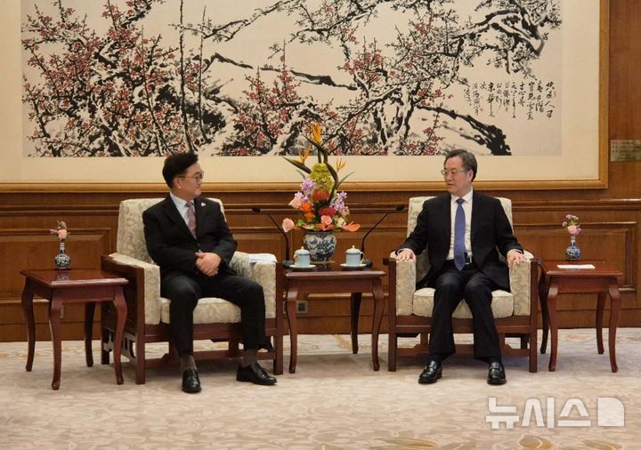 딩 부총리는 "중국은 한국과 함께 양 정상의 합의를 잘 이행하고 양국 간의 소통과 왕래를 강화하고 상호 신뢰를 증진해 협력을 촉진함으로써 양 국민들에게 더 많은 복지를 가져다줄 뜻이 있다"고 말했다.