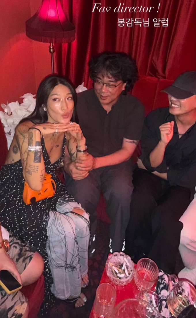 마약 투약 혐의로 유죄 판결을 받은 유아인이 페기 구, 봉준호 감독과 파티를 즐기는 모습이 포착됐다. /사진=SNS 갈무리 |