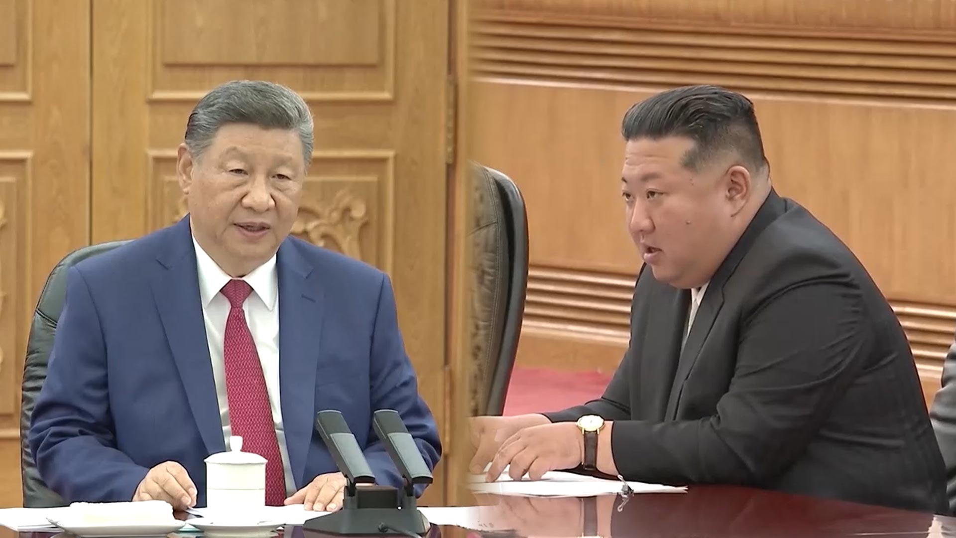 최근 북한이 러시아와 군사적으로 밀착하면서 다소 어색해졌던 북중 관계를 개선하고 결속을 다졌음을 보여주는 상징적인 장면들입니다.