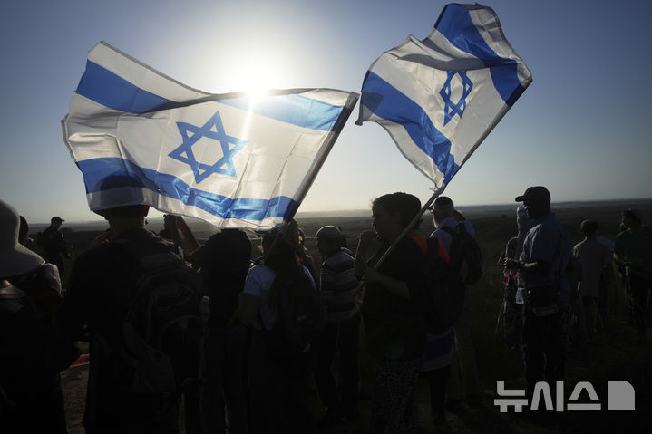 [이스라엘 남부=AP/뉴시스] 7월 30일 이스라엘 남부 가자지구 접경 지역에서 이스라엘 극우 활동가들이 국기를 들고 유대인 정착촌 재건 촉구 행진을 하고 있다. 2025.09.05. |