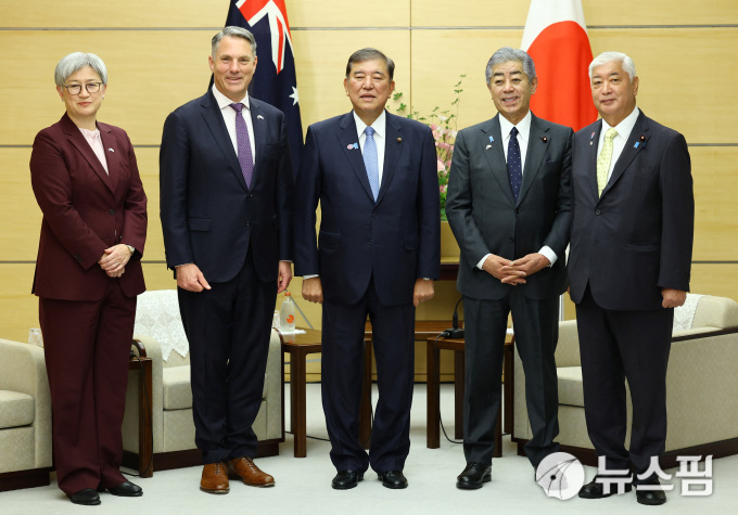 왼쪽부터 페니 웡 호주 외교장관, 리차드 말스 국방관, 이시바 시게루 일본 총리, 이와야 다케시 외무상, 나카타니 겐 방위상. [사진=로이터 뉴스핌] |