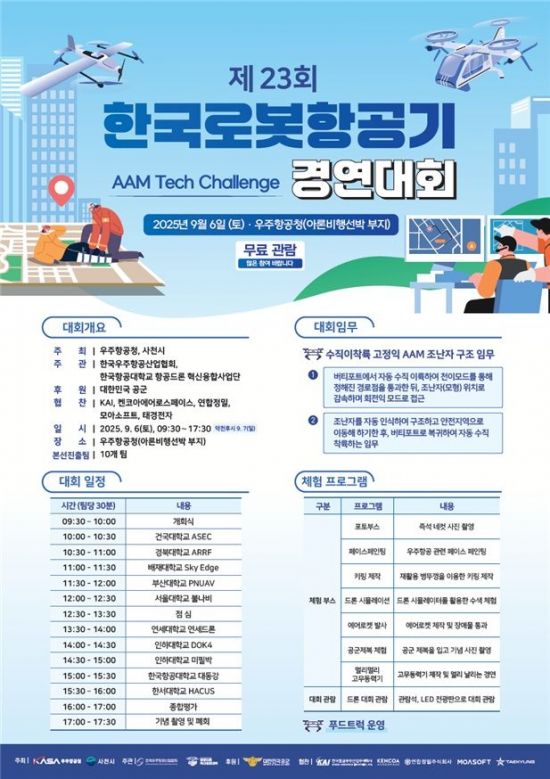 우주항공청과 사천시가 공동주최하는 이번 경연대회는 2002년 처음 개최된 무인항공기 분야 국내 최고 권위의 경연대회다.
