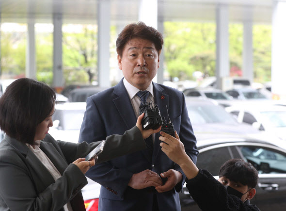 ‘라임 사태’ 핵심 인물인 김봉현 전 스타모빌리티 회장으로부터 불법 정치자금을 받은 혐의로 재판에 넘겨진 더불어민주당 기동민 의원이 서울 양천구 남부지법에서 열린 관련 공판에 출석하기 앞서 취재진의 질문에 답하고 있다.(사진=연합뉴스) |