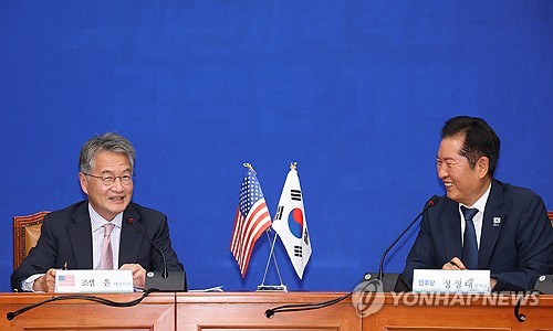 (서울=연합뉴스) 이슬기 박재하 기자 = 더불어민주당 정청래 대표와 조셉 윤 주한 미국대사대리는 5일 국회에서 만나 최근 한미정상회담이 성공적으로 진행됐다고 평가하면서 양국 간 협력 강화를 위한 노력을 다짐했다.
