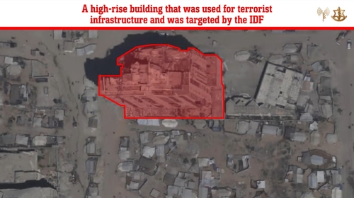 2시간여 뒤 이스라엘군은 성명에서 "하마스 테러 조직이 사용하던 고층 건물을 공습했다"며 민간인 피해를 최소화하기 위해 사전 경고를 전달하고 정밀 무기를 사용했다고 설명했다.