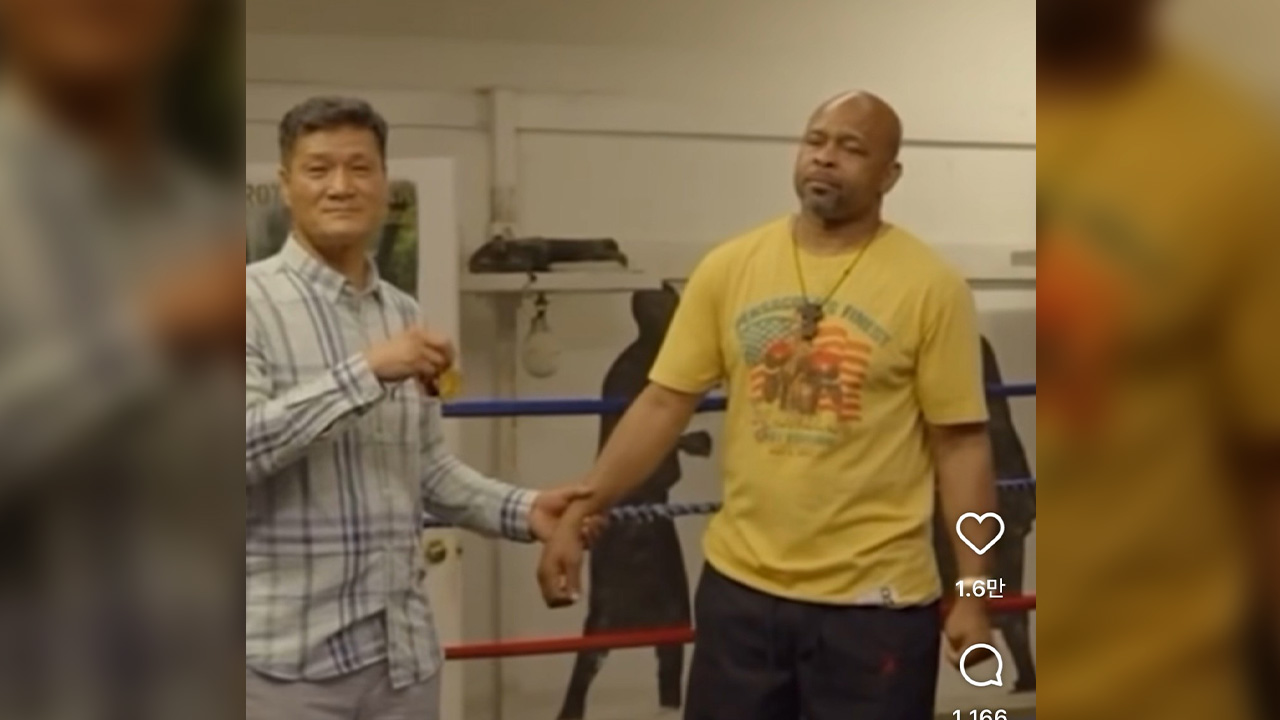 이어 금메달을 꺼내 어리둥절한 표정을 짓던 존스 주니어에 "이건 88년 서울 올림픽 금메달이다. 그때 홈에서 금메달을 가져갔습니다. 지금은 내가 잘못된 걸 알고, 로이 존스 주니어 홈(미국)에서 이 메달을…"이라며 돌려주는 걸 암시하는 듯한 말을 했습니다.