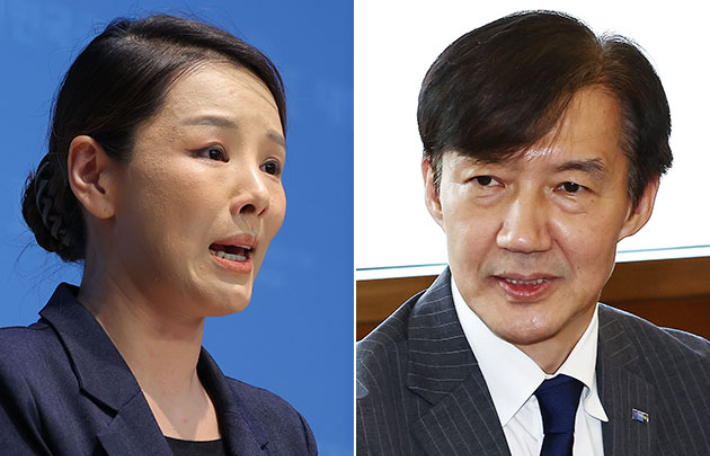 강미정 전 조국혁신당 대변인(왼쪽)과 조국혁신당 조국 혁신정책연구원장. 연합뉴스 |
