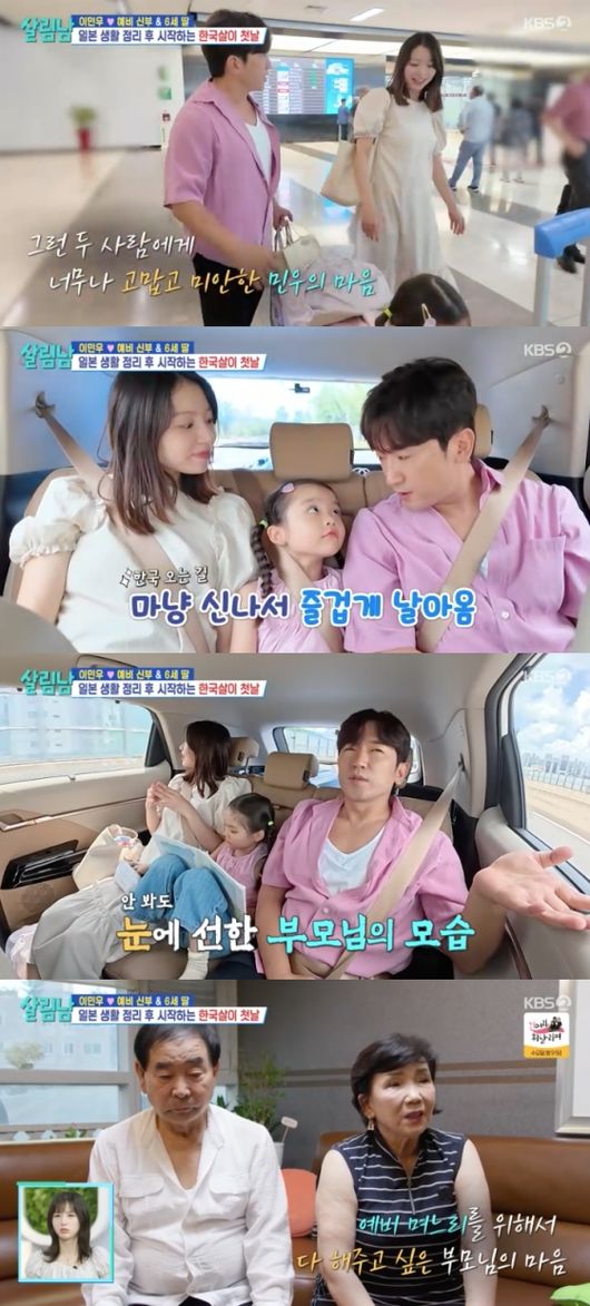 이민우는 공항에서 예비 신부와 딸을 반갑게 맞았다. 일본 생활을 정리한 후 새롭게 한국생활을 시작하게 된 예비 신부는 씩씩한 모습을 보였다. 이민우는 “(온다고) 어제 얘기했다. 부담 갖고 신경 쓰일까봐”라고 말했고, 예비 신부는 “깜짝 놀라셨을 텐데”라며 걱정하는 모습을 보였다.