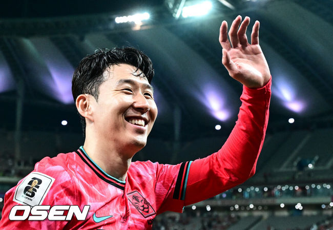 [OSEN=상암, 조은정 기자]대한민국 대표팀이 무려 15년 만에 패배 없이 최종예선을 마무리했다.홍명보 감독이 이끄는 대한민국축구 국가대표팀은 10일 서울월드컵경기장에서 열린2026 국제축구연맹(FIFA) 북중미 월드컵 아시아지역 최종예선 3차 예선 B조 10차전에서 쿠웨이트와 맞붙어 4-0으로 대승했다.대표팀손흥민이 관중을 향해 인사를 하고 있다. 2025.06.10 /cej@osen.co.kr |