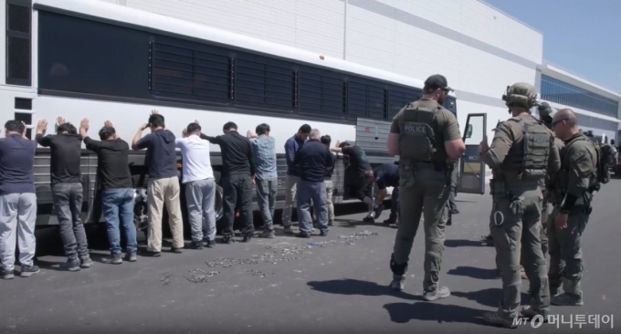 [서울=뉴시스] = 미국 이민 단속 당국이 홈페이지를 통해 지난 4일(현지시간) 조지아주 현대차그룹-LG에너지솔루션의 합작 배터리 공장 건설현장에서 벌인 불법체류·고용 단속 현장 영상을 홈페이지를 통해 공개했다. (사진= ICE 홈페이지 영상 캡쳐) 2025.09.06. |