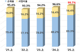 손해율 및 사업 비율 추이.(자료=금감원) |