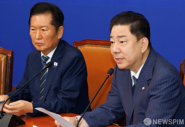 [서울=뉴스핌] 윤창빈 기자 = 김병기 더불어민주당 원내대표가 8일 오전 서울 여의도 국회에서 열린 최고위원회의에서 모두발언을 하고 있다. 2025.09.08 pangbin@newspim.com