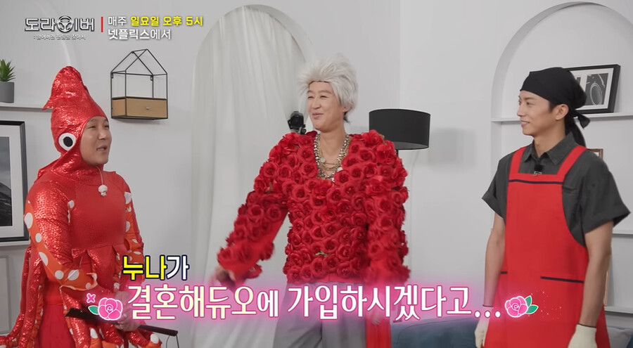 여기에 조세호는 "우리끼리 얘긴데 누나가 듀오에 가입하시겠다고 했다"라고 폭로했고, 주우재 역시 "실제로 저희 톡방에 듀오에 가입해야겠다고 했다"라면서도 "저희가 너무 걱정하니까 누나가 걱정하지 말라고"라고 말했다.