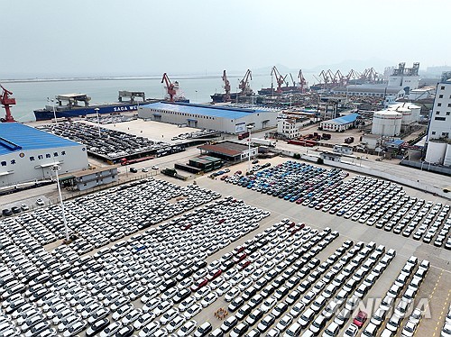중국 동부 장쑤성 롄윈강시의 수출항 |