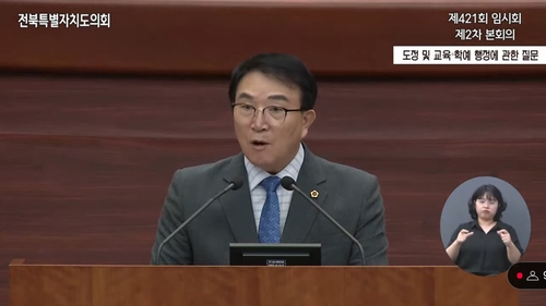 (전주=연합뉴스) 임채두 기자 = 강태창(군산 1) 전북특별자치도의회 의원은 8일 "정부의 2차 공공기관 이전 논의가 한창인데, 전북도가 1차 공공기관 이탈 시도에 전혀 대응하지 못하고 있다"고 지적했다.