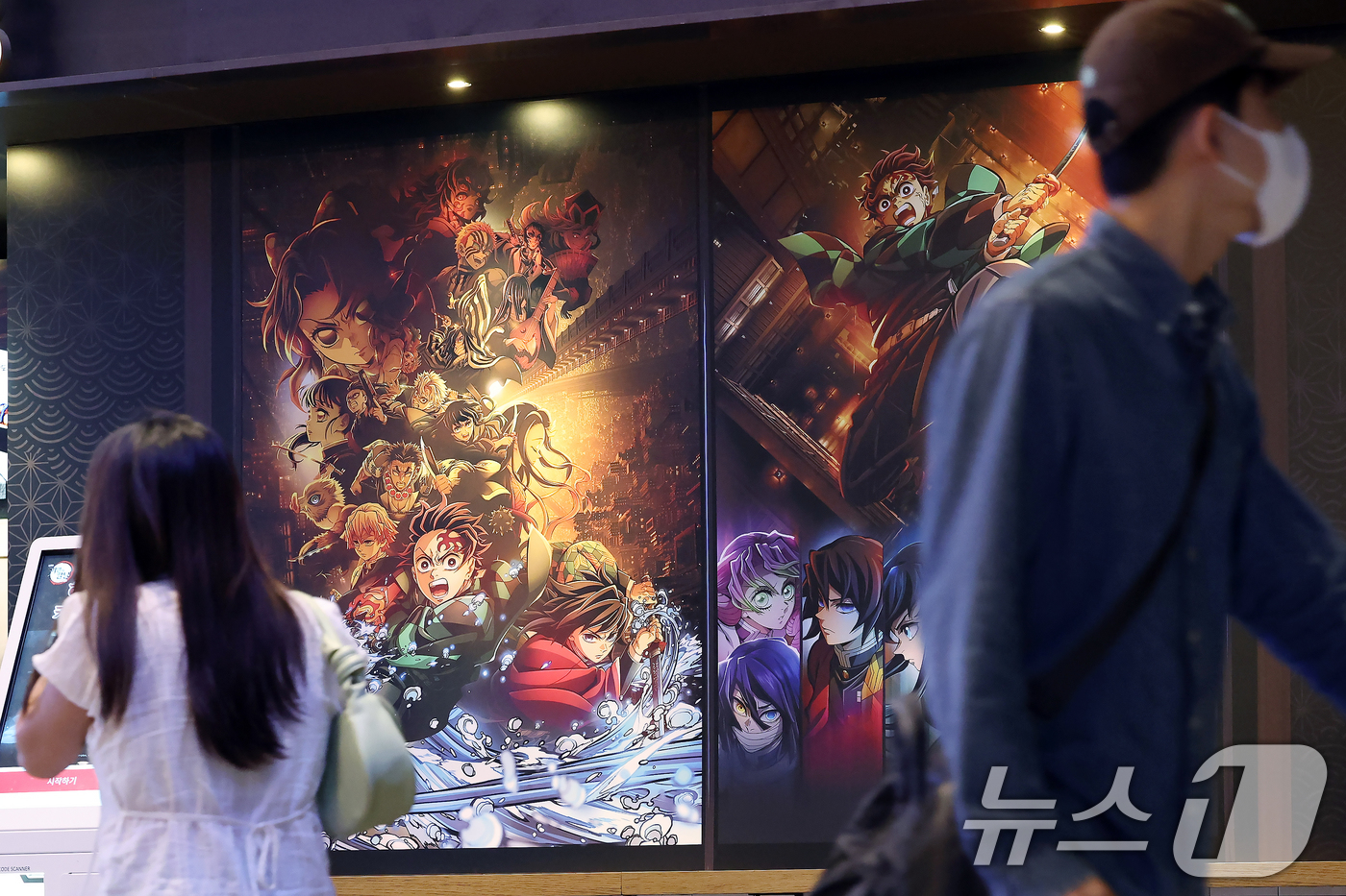 (서울=뉴스1) 박정호 기자 = 애니메이션 영화 '극장판 귀멸의 칼날: 무한성편'의 흥행이 이어지며 400만 관중 돌파를 앞둔 8일 서울의 한 영화관을 찾은 관객들이 상영관으로 향하고 있다. 영화진흥위원회 영화관입장권 통합전산망 집계에 따르면, '극장판 귀멸의 칼날: 무한성편'은 7일 17만 9724명의 관객을 동원하며 1위를 유지했다. 누적 관객 수는 395만 7581명으로 400만 관중 돌파를 목전에 두고 있다. 2025.9.8/뉴스1