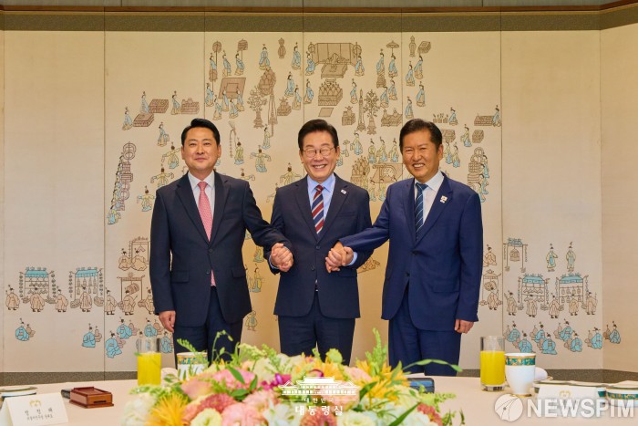 [서울=뉴스핌] 김종원 선임기자 박찬제 박성준 기자 = 이재명 대통령과 정청래 더불어민주당 집권 여당 대표, 장동혁 국민의힘 제1야당 대표는 8일 용산 대통령실 오찬 회동에서 향후 소통과 상생의 정치를 위해 여·야·정이 계속 대화와 소통을 해 나가기로 했다.