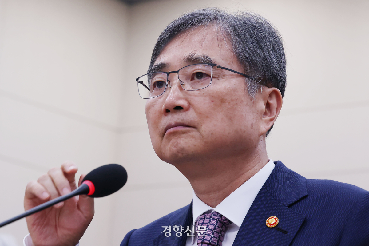 조현 외교부 장관이 8일 국회에서 열린 외교통일위원회의 긴급 현안질의에 출석해 답변하고 있다. 한수빈 기자 |
