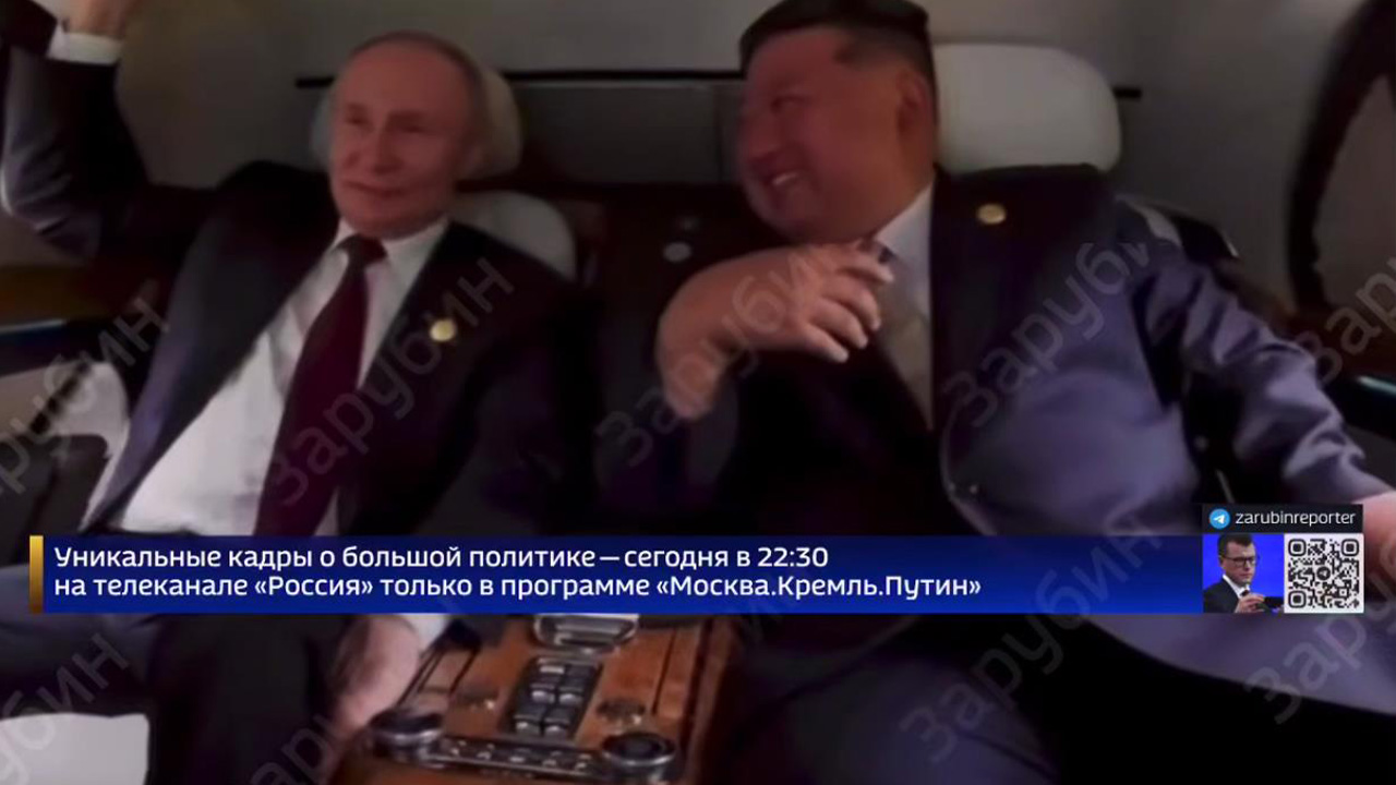 러시아 국영방송 전러시아 국립 TV·라디오 방송사(VGTRK) 소속 파벨 자루빈 기자는 8일(현지시간) 자신의 텔레그램에 푸틴 대통령과 김 위원장이 비공개 대화를 나누는 영상을 게시했습니다.