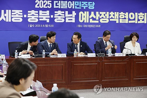 (서울=연합뉴스) 김남권 안정훈 기자 = 더불어민주당은 8일 충청권(대전·세종·충북·충남) 예산정책 협의회를 열어 지역 발전을 위한 지원을 강조했다.