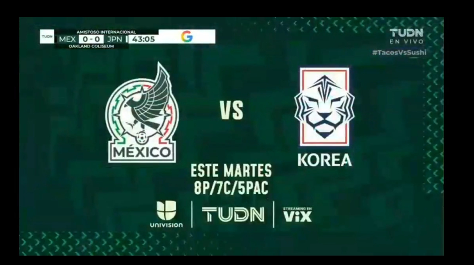해당 화면에 함께 써 있는 "Este Martes"라는 문구는 이번 주 화요일이라는 뜻, 즉 화요일에 한국전이 열린다는 의미였다. 해당 중계사가 경기 내내 대한축구협회 로고를 내보낸 이유는 일본전 이후 치러지는 한국과의 친선경기를 홍보하기 위한 의도였던 것이다.