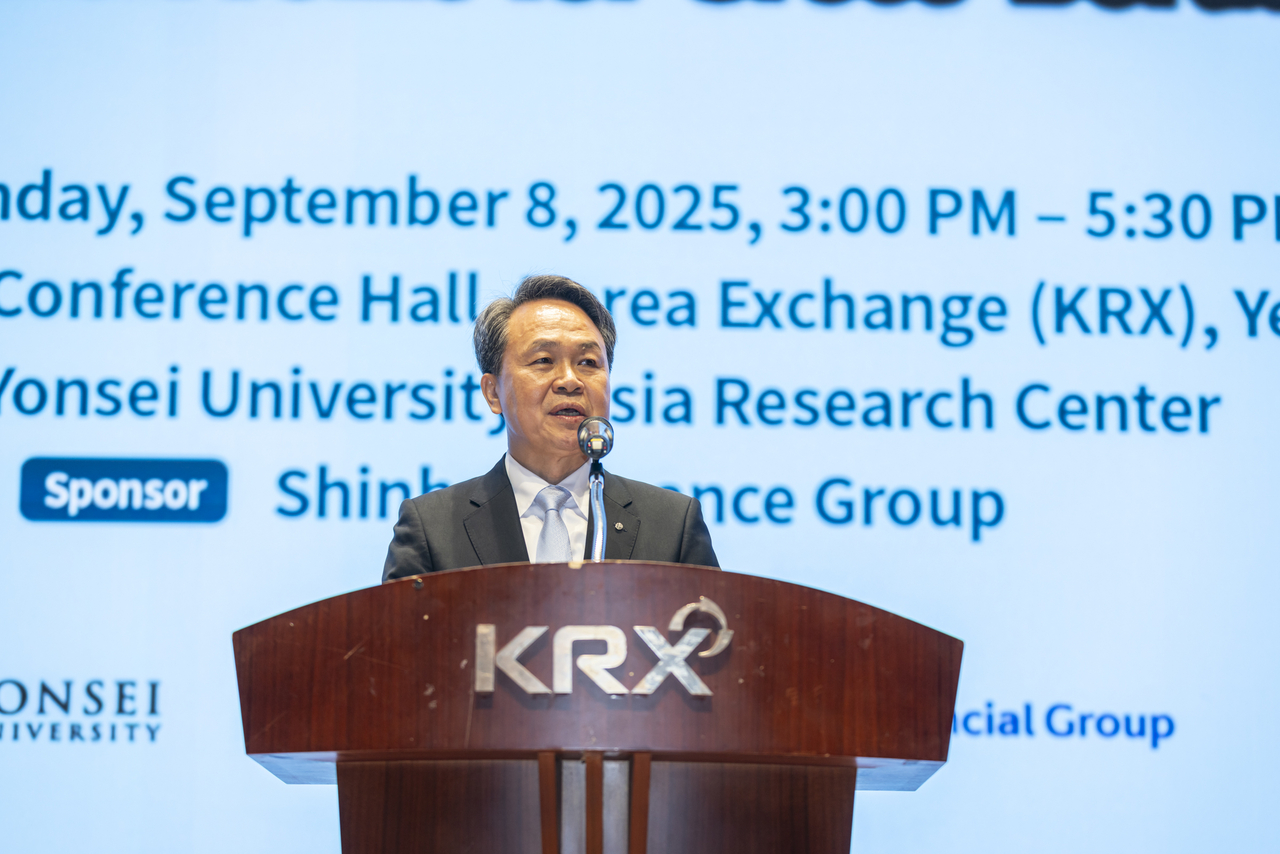 진옥동 신한금융그룹 회장이 8일 ‘한·일 금융협력 세미나’에서 축사를 하고 있다. [신한금융그룹 제공] |