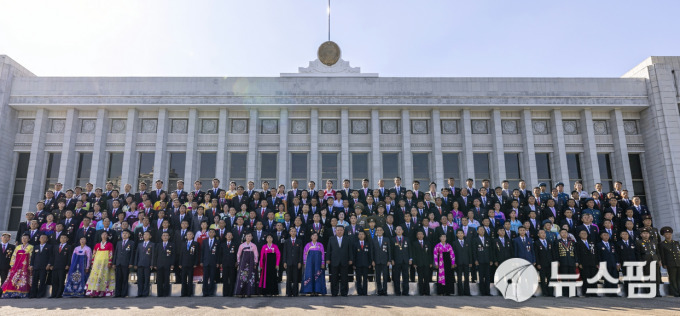 [서울=뉴스핌] 이영종 통일전문기자 = 북한 국무위원장 김정은이 정권 수립 77주년을 맞은 9일 평양 만수대의사당 앞에서 노력혁신자 등과 기념촬영을 했다. [사진=노동신문] 2025.09.10 yjlee@newspim.com |