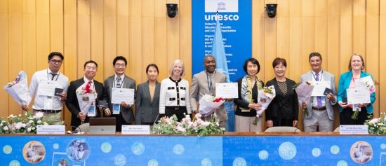 '2025년 유네스코 세종대왕 문해상'을 받은 수상자들이 지난 8일(현지시간) 프랑스 파리의 유네스코 사무국에서 열린 시상식에서 기념사진을 찍고 있다. [사진 제공= 문화체육관광부] |