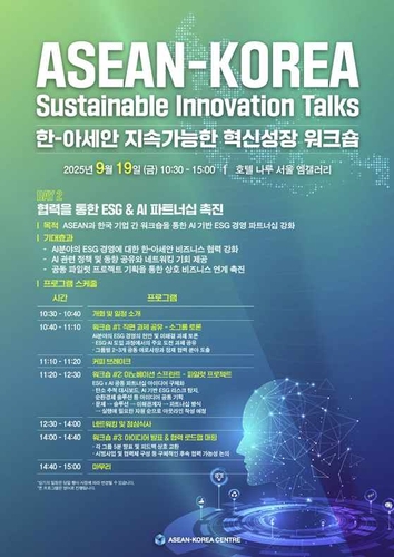 (서울=연합뉴스) 이상서 기자 = 한국 기업과 아세안 관계자 간 인공지능(AI) 산업 분야의 협력을 강화하기 위한 '한-아세안 지속가능한 혁신성장 토크 워크숍'이 18일부터 이틀간 서울 마포구 호텔 나루 서울 엠갤러리에서 열린다.