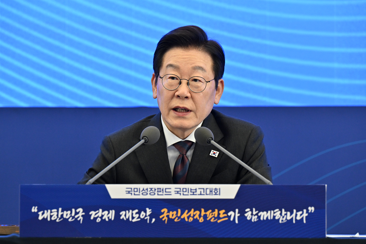 이재명 대통령이 10일 마포 프론트원빌딩에서 열린 국민성장펀드 국민보고대회에서 모두발언을 하고 있다. 대통령실사신기자단 |