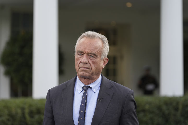[백악관=AP/뉴시스]로버트 F 케네디 미국 보건복지부장관이 9일(현지 시간) 백악관 웨스트윙 앞에서 인터뷰하고 있다. 2025.09.10. |
