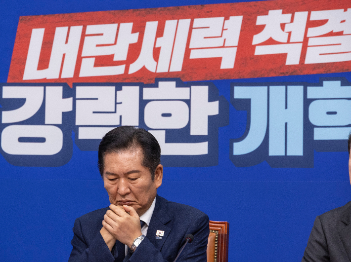 '역대급 망언' 비판 뒤 생각에 잠긴 정청래. 연합뉴스 |