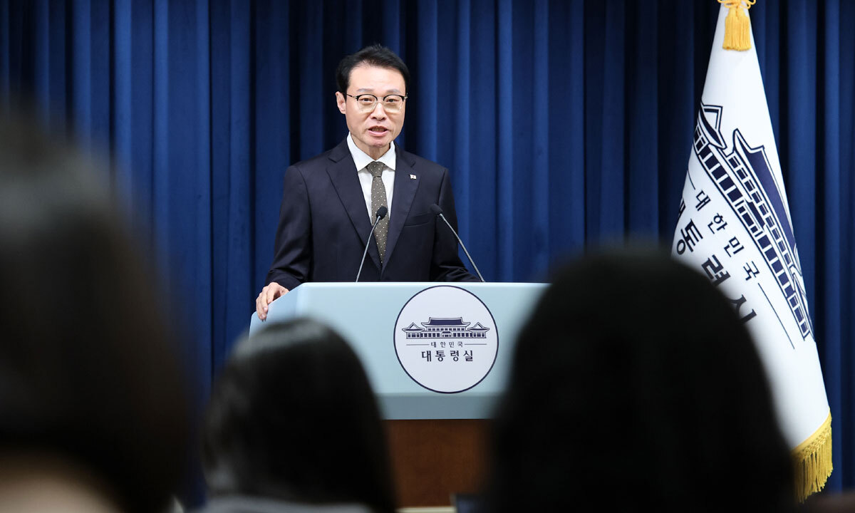 이규연 대통령실 홍보소통수석이 10일 서울 용산 대통령실에서 11일 예정된 이재명 대통령 취임 100일 기자회견 관련 브리핑을 하고 있다. 대통령실사진기자단 |