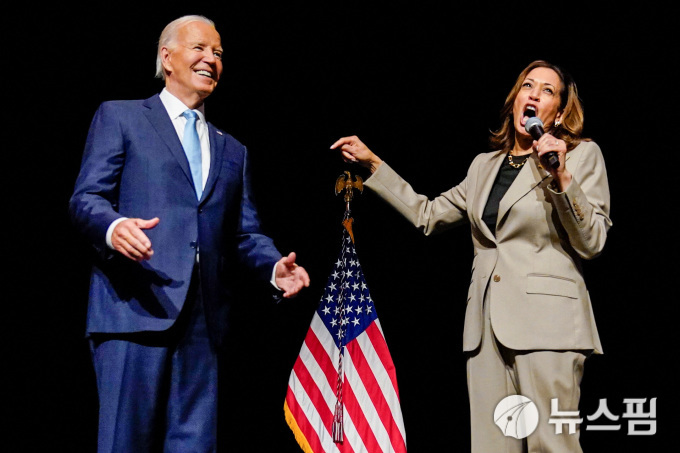 합동 유세에 나선 조 바이든 미국 대통령(왼쪽)과 카멀라 해리스 부통령 [사진=로이터 뉴스핌] |