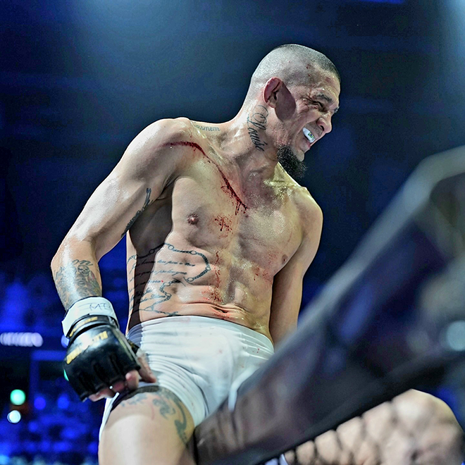 ‘노블레스’ 미우송 카스트루가 2025년 8월 인천광역시 영종국제도시 인스파이어 아레나 블랙컴뱃 15 웰터급 경기 승리 후 감정을 자제하고 있다. 사진=이데아 파라곤 |