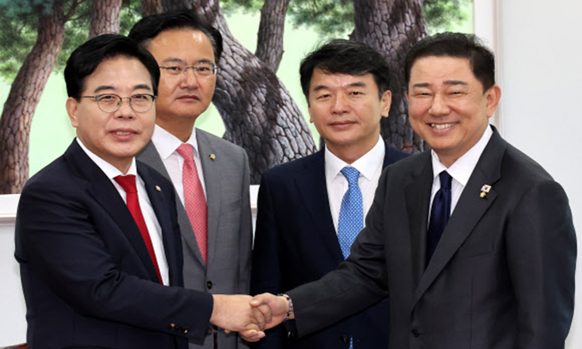 더불어민주당 김병기 원내대표와 문진석 원내운영수석부대표, 국민의힘 송언석 원내대표와 유상범 원내운영수석부대표는 10일 국회에서 원내대표 회동을 가졌다. 두 차례에 걸친 회동이 종료된 후 양당 원내대표는 “민주당은 3대(내란·김건희·순직해병) 특검법 개정안에 대한 국민의힘 수정 요구를 수용하고, 국민의힘은 금융감독위 설치에 관련된 법률 제·개정에 최대한 협조한다”는 내용의 합의문을 발표했다.