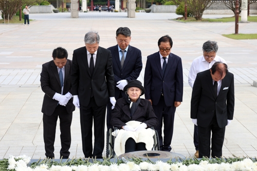 참배하는 김옥숙 여사와 노재헌 (광주=연합뉴스) 5·18민주화운동 45주년 하루 뒤인 19일 노태우 전 대통령의 배우자인 김옥숙 여사가 아들 노재헌씨와 함께 광주 북구 운정동 국립5·18민주묘지를 찾아 참배하고 있다. 2025.5.19 [국립5·18민주묘지 제공. 재판매 및 DB 금지] in@yna.co.kr (끝) <저작권자(c) 연합뉴스, 무단 전재-재배포, AI 학습 및 활용 금지> |