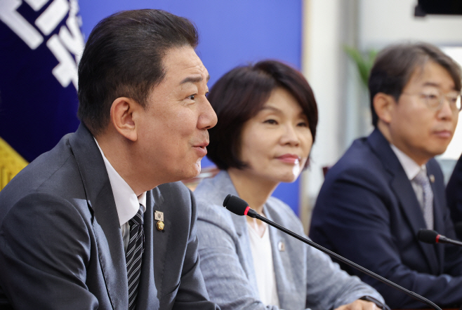김병기 더불어민주당 원내대표가 11일 서울 여의도 국회에서 열린 정책조정회의에서 발언하고 있다. /연합 |