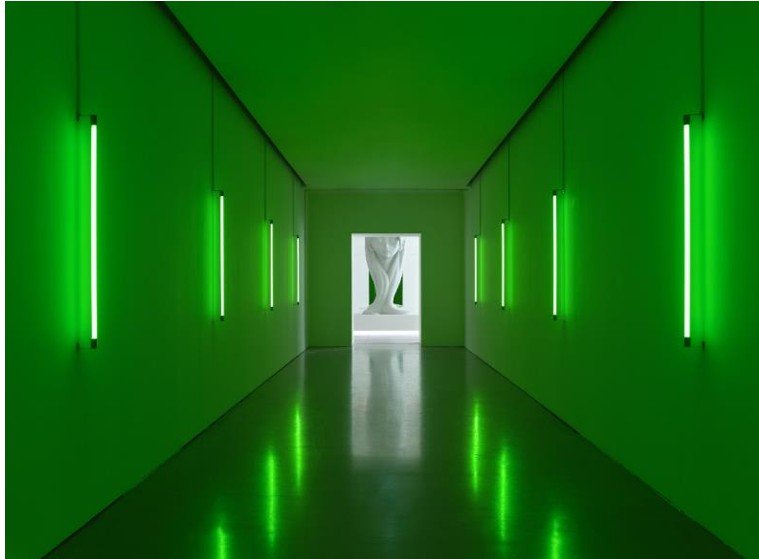전시장 입구에 들어서면 우선 초록 조명의 '십자 복도'가 시야를 가른다. 벽과 바닥을 물들인 크로마키 초록 조명은 마치 영화의 로딩 화면처럼 현실과 가상의 경계선을 흐릿하게 만든다. 이곳에서 관람객은 세 개의 섹션인 '프로토타입-1, 2, 3' 중 어느 쪽부터 탐험할지 스스로 선택하게 된다. 경로는 직선이 아니라 되돌아오는 원, 반복되는 순환 구조다.