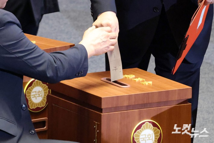 11일 서울 여의도 국회에서 열린 제429회국회(정기회) 제4차 본회의에서 국민의힘 권성동 의원이 자신에 대한 체포동의안에 투표를 하고 있다.