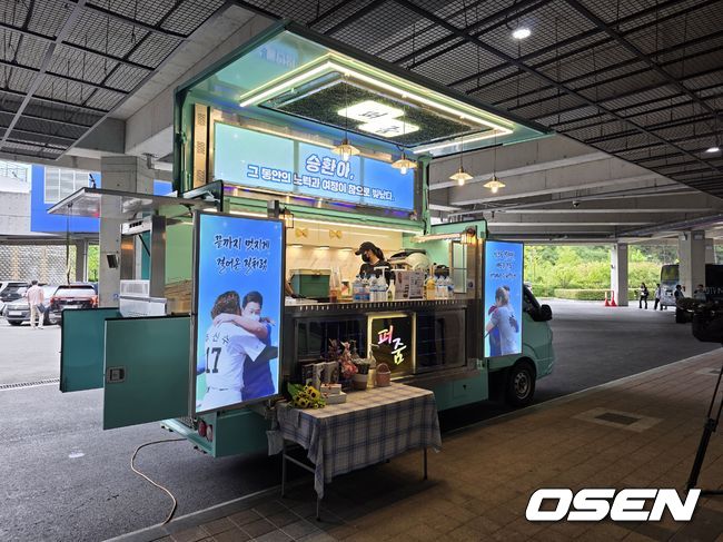커피 트럭에는 추신수 보좌와 오승환이 포옹하는 사진과 함께 ‘승환아, 그 동안의 노력과 여정이 참으로 빛났다’ ‘끝까지 멋지게 걸어온 길처럼 앞으로 펼쳐질 새로운 길도 언제나 응원할게’라는 추신수 보좌의 메시지도 적혀 있었다.