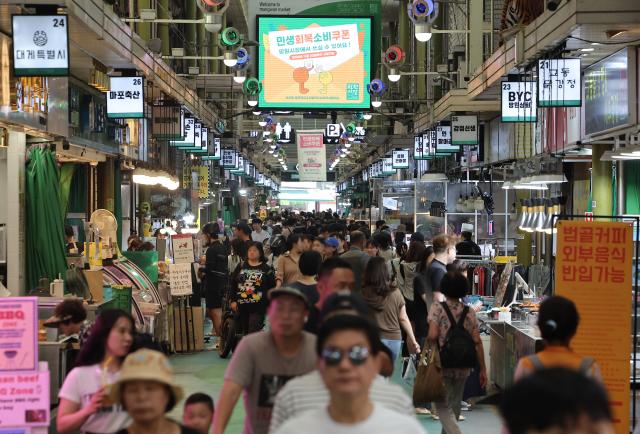 유통업계는 오는 22일부터 지급하는 2차 민생회복 소비쿠폰에 기대감을 걸고 있다. 전 국민에게 지급하던 1차와 달리 소득 하위 90%에만 주어지고 금액도 10만원으로 줄었지만, 단번에 4조7000억원 규모의 돈이 시장에 풀리는 만큼 소비 진작에 도움을 줄 전망이다. 다만 1차 때와 마찬가지로 대형마트 등은 사용처에서 빠져 시장 활성화 효과가 제한적일 것이란 분석도 나온다.